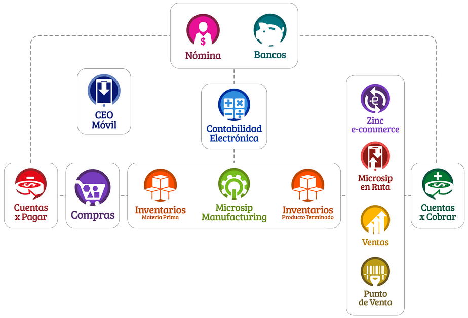 “Completo ERP para PYME's con más de 30 años de experiencia en el mercado y se encuentra conformado por trece módulos, los cuales pueden funcionar en forma individual o integral.”